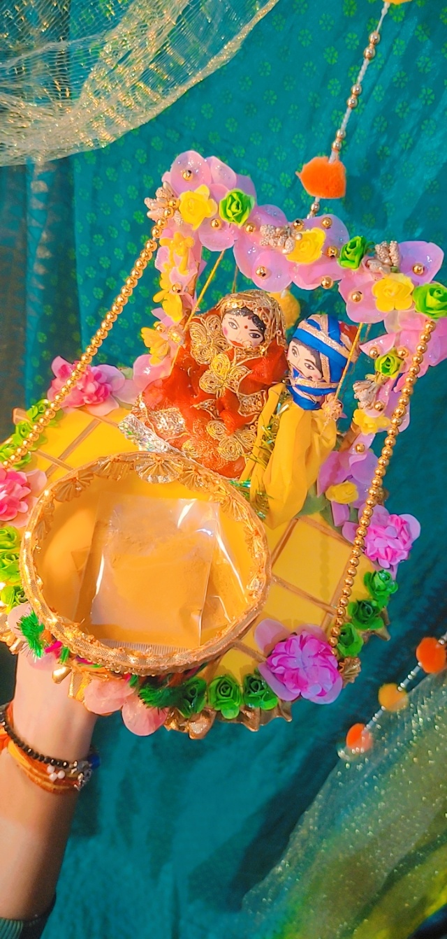 Handcrafted decorated haldi platter with haldi bowl for wedding purpose